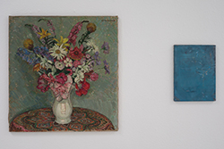 “Schoorel joins in a painterly game that stretches back at least as far as the seventeenth century. Frans Hals is exemplary of the way that a ruffled collar or sleeve constantly oscillates between the mimetic rendering of a thing in the world and the virtuosic demonstration of its own material identity as paint. But whereas in the work of Hals and his contemporaries, this instability generally plays out only in discrete areas, never threatening the recognizability of the overall composition, in Schoorel’s work the playing field extends across the entirety of the canvas.”